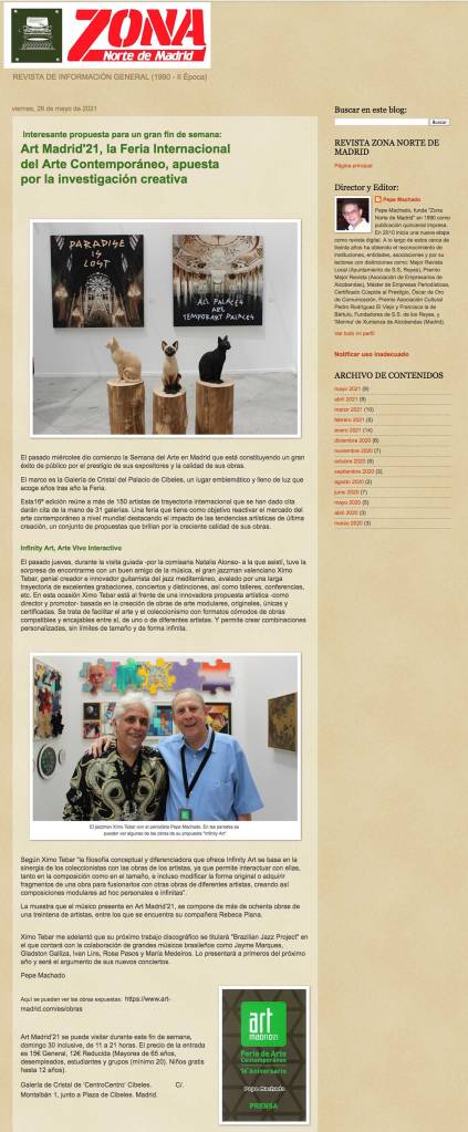 Ximo Tebar me adelantó que su próximo trabajo discográfico se titulará «Brazilian Jazz Project» en el que contará con la colaboración de grandes músicos brasileños como Jayme Marques, Gladston Galliza, Ivan Lins, Rosa Pasos y María de Medeiros. Lo presentará a primeros del próximo año y será el argumento de sus nuevos conciertos.