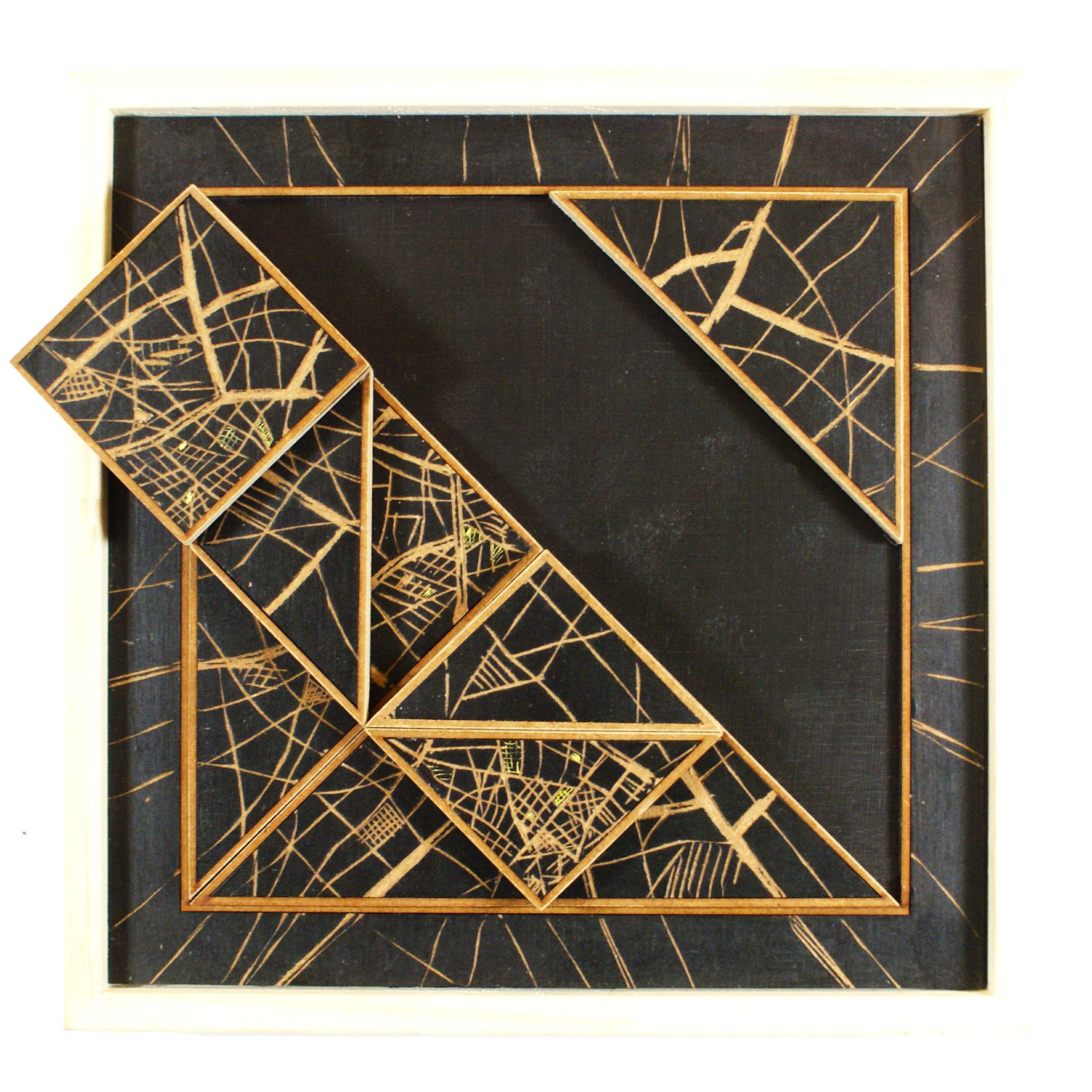Impresión digital en lienzo magnetizado de obra original intervenida. Obra gráfica interactiva de 45×45 cm + 24 piezas móviles realizadas a mano de madera de wengué y sicomoro adheridas magnéticamente simulando las piezas del juego de damas que se pueden disponer en el tablero, de forma interactiva. Tirada: 100 ejemplares numerados y firmados. Marco Infinity magnetizado 3 cm grosor. Incluye accesorio fijación magnética