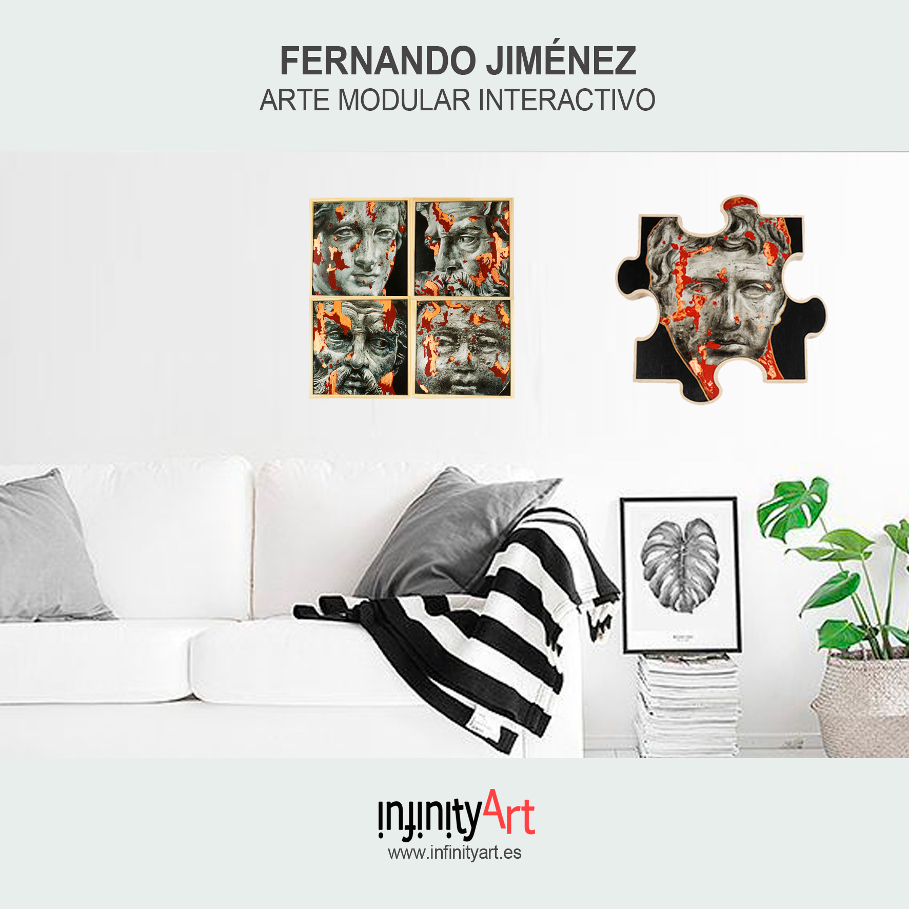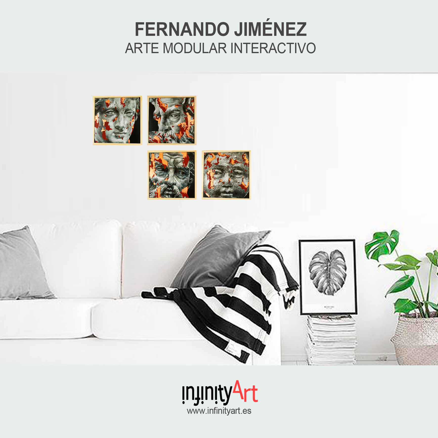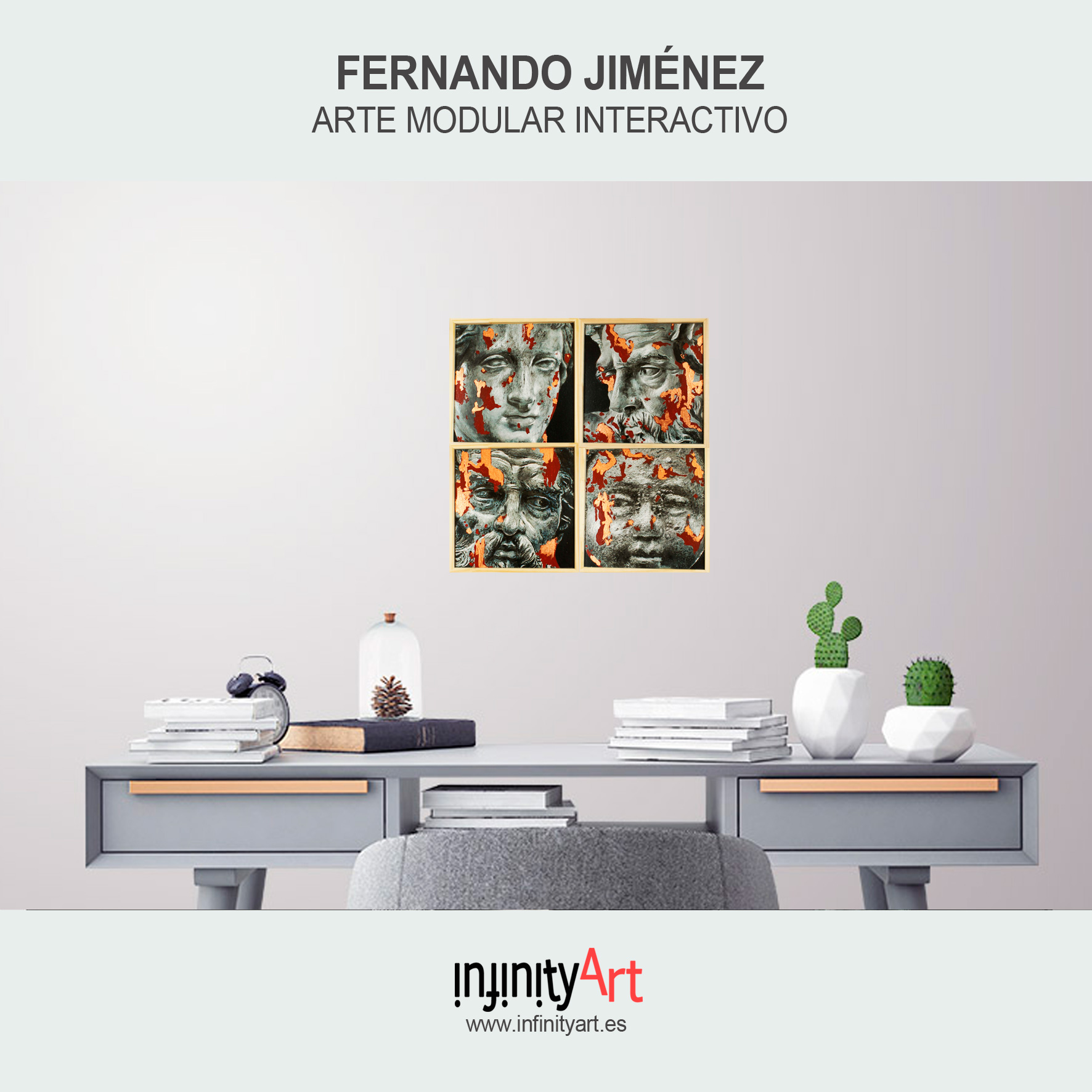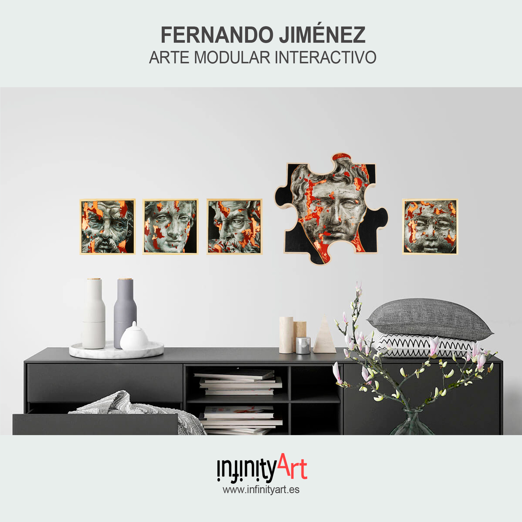 Obra modular Ăşnica e interactiva pintada sobre 6 mĂłdulos independientes magnetizados de 26×26 cm cada uno, y enmarcadas en marcos Infinity de madera tallada de 2 cm de grosor. Incluye accesorios de fijaciĂłn magnĂ©tica. Las posibilidades de exposiciĂłn, disposiciĂłn e instalaciĂłn que ofrece esta obra son infinitas.