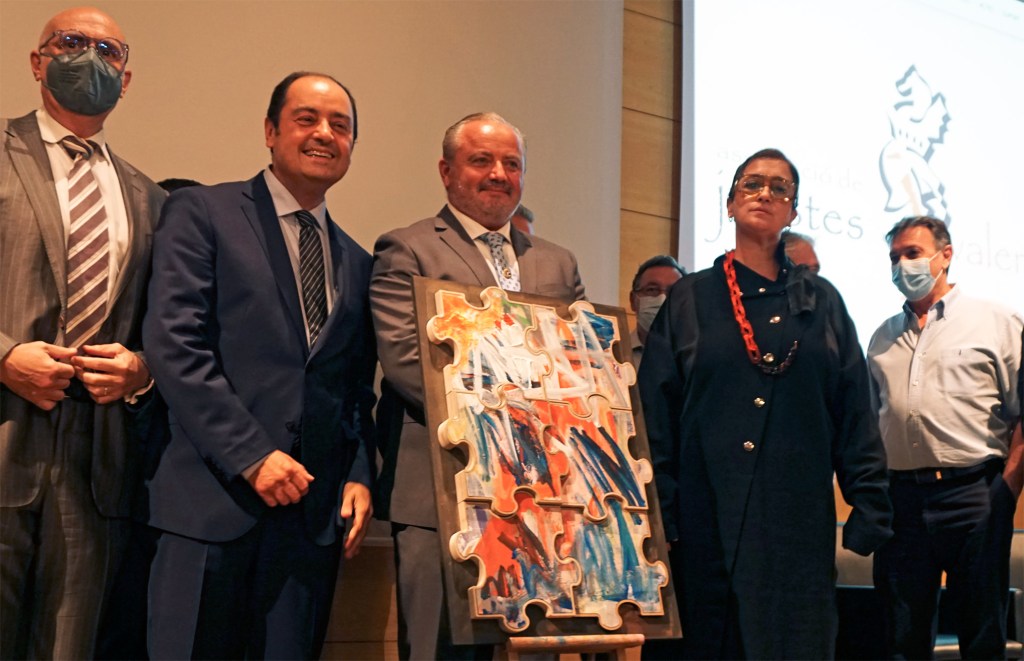 El Periodic [01/10/21].- El premio, que consta de una obra de la reconocida pintora valenciana Rebeca Plana, ha sido concebido por la artista expresamente para la ocasión. La pieza se titula “Aigües”, una obra única inspirada en motivos del Tribunal de les Aigües, y enmarcada por el concepto modular de obra interactiva Infinity Art. Rebeca Plana destaca por su arte enérgico de gran colorido y sus contundentes trazos la hacen inconfundible.