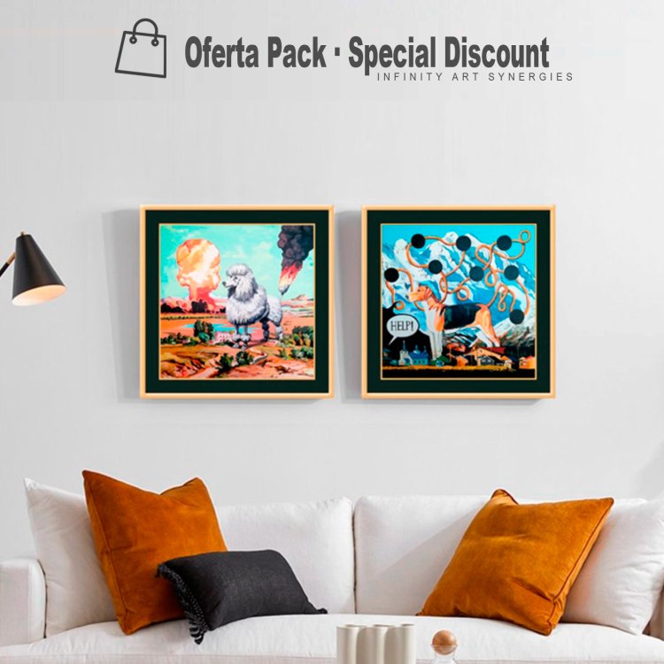 Todas las obras InfinityArt se suministran enmarcadas en marcos de madera tallada, trabajada, magnetizada y mecanizada a mano, de 2, 3 o 4 cm de grosor, e incluyen el innovador sistema de fijación magnética Infinity Magnet Hook, exclusivo de InfinityArt, que permite fijar la obra en la pared en menos de un minuto, y ajustar, rectificar o mover en todas las direcciones la colocación de la obra sin necesidad de despegar o agujerear la pared, haciendo viable y practicable el juego modular, esencial de las obras InfinityArt, y permitiendo decidir muy fácilmente la configuración de la composición y el diseño expositivo de las obras, modificarlo o ampliarlo en cualquier momento… Más información, videos y guía de instalación y usos.