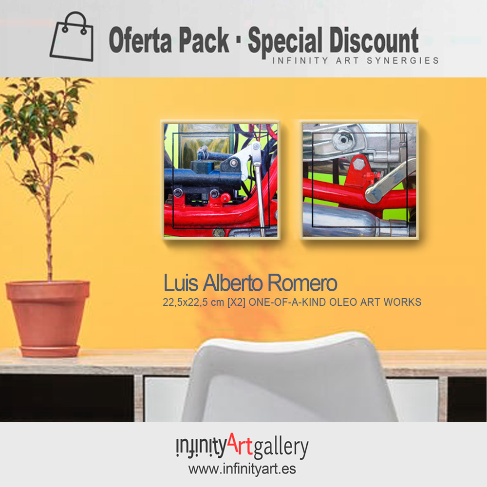 Técnica: Acrílico sobre lienzo. Medidas: 45×45 cm. cada una. Enmarcadas en marcos magnetizados Infinity de 3 cm de grosor. Incluyen accesorios de fijación magnética. Obras únicas creadas y firmadas a mano por el artista. Precios incluyen: Envío Gratuito Postal Express 48 h, y Certificado de Autenticidad