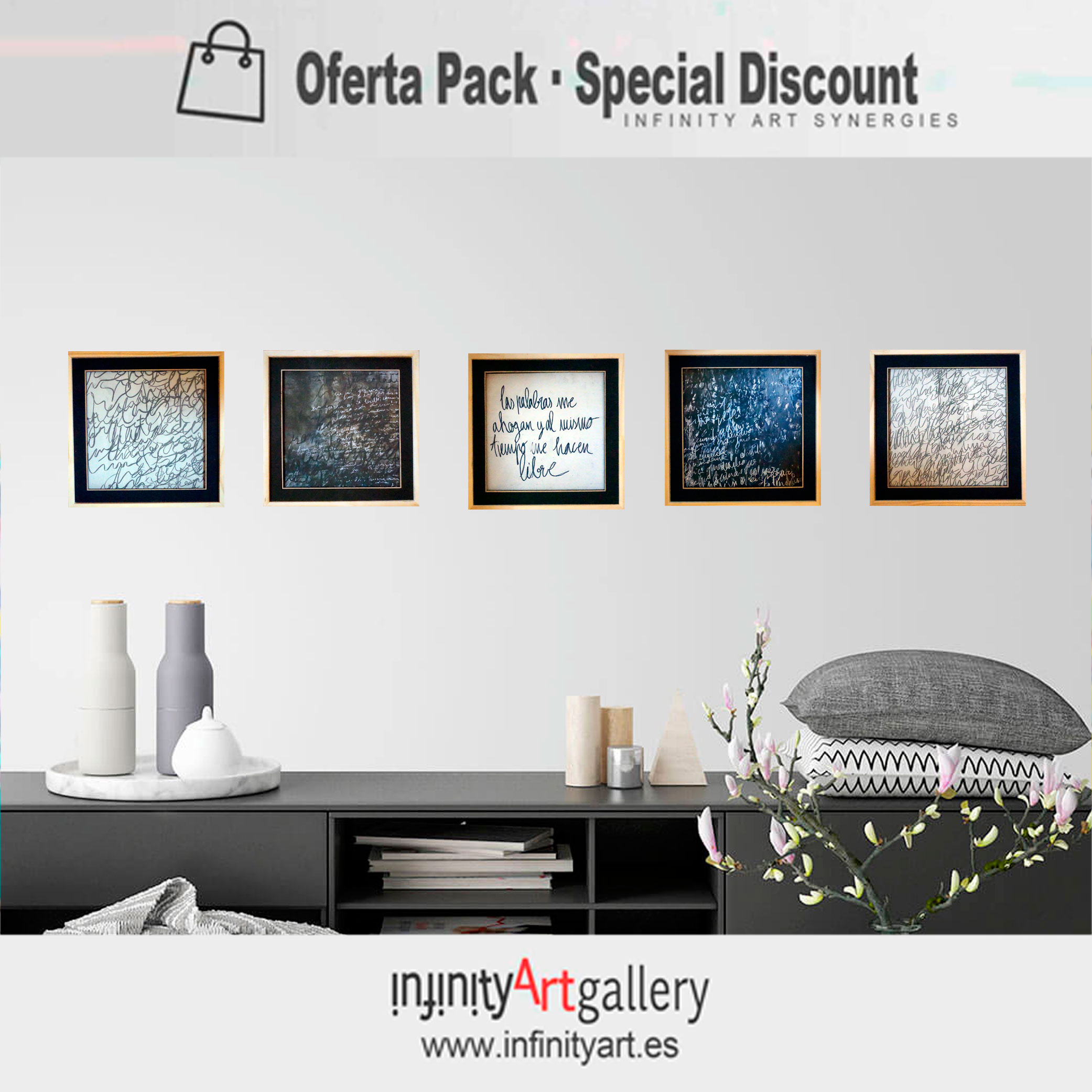 Obras únicas. Enmarcadas en marcos Infinity magnetizados.