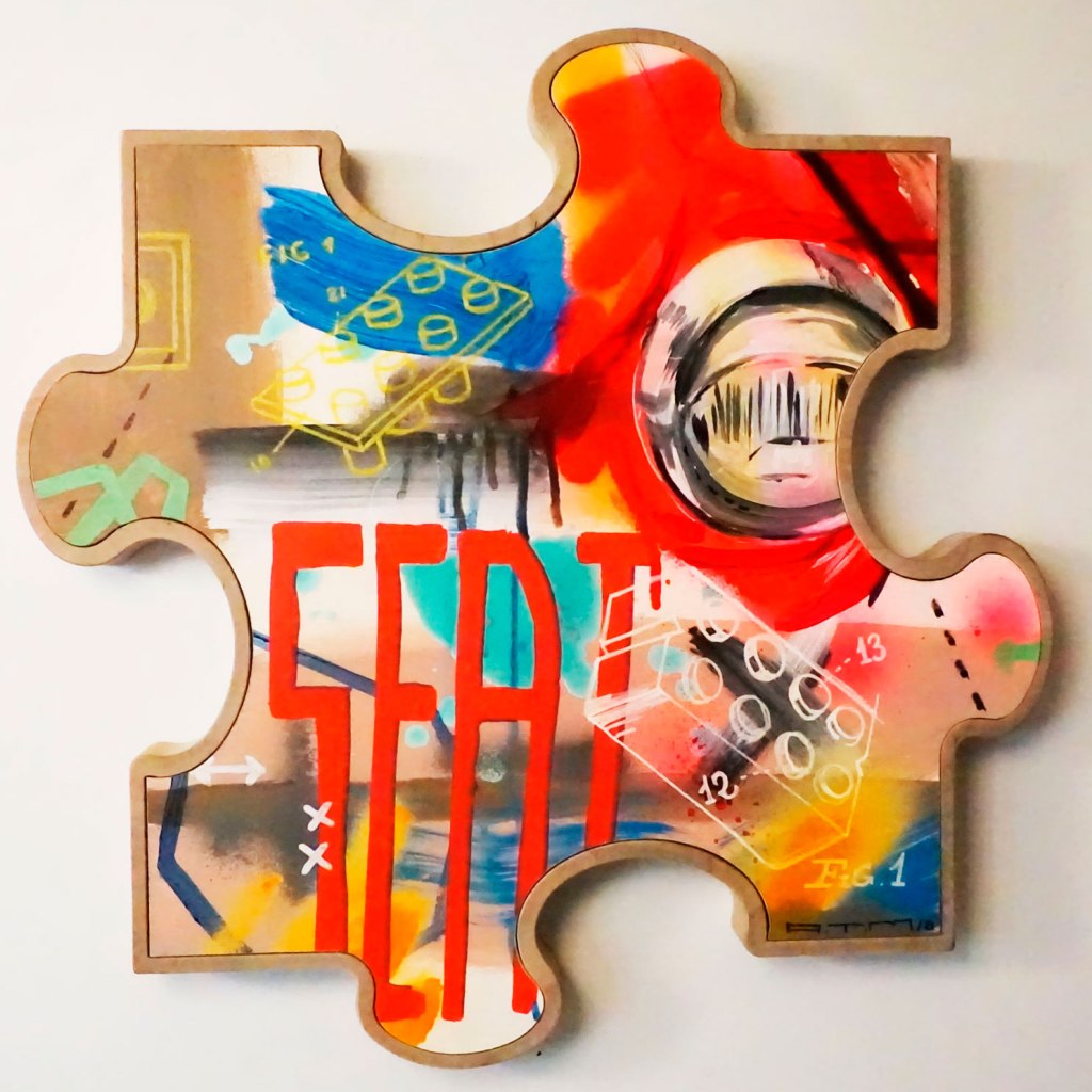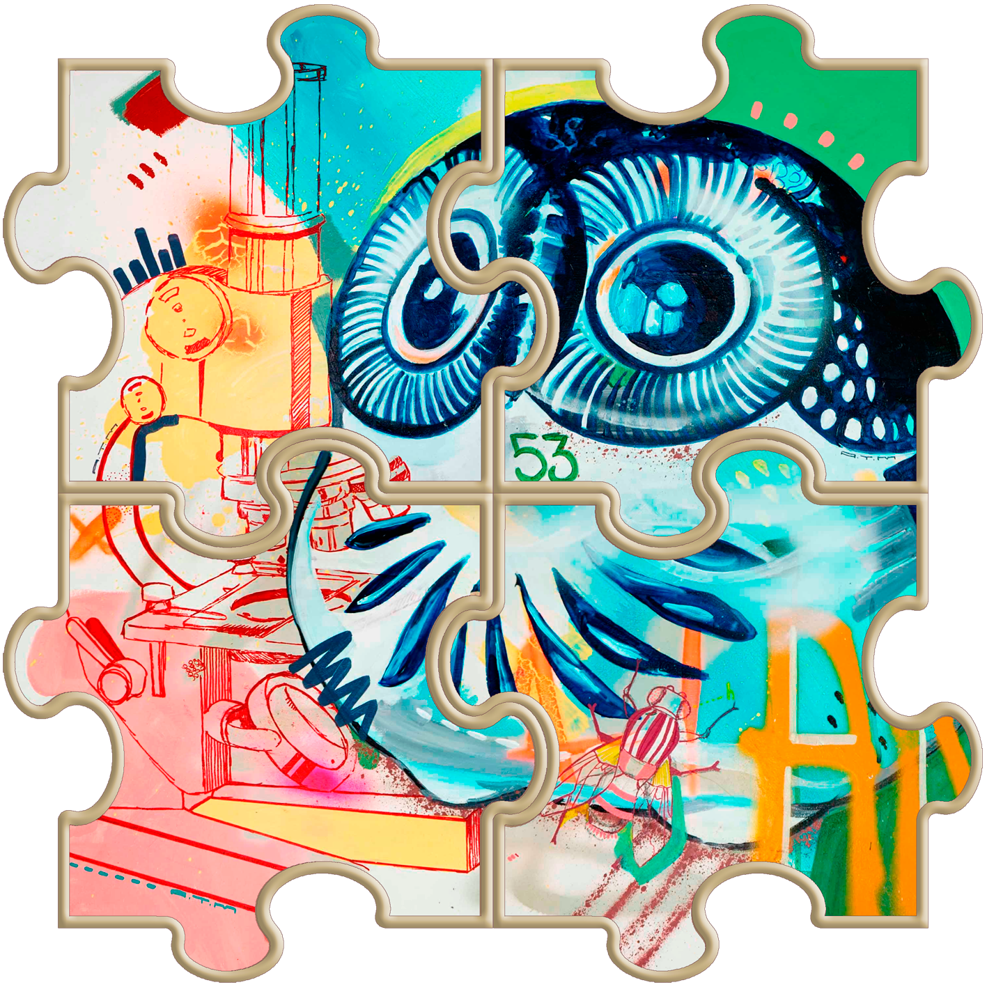Obra original única pintada sobre 4 módulos de 45×45 cm cada uno. Enmarcadas en marcos Infinity de madera de 3 cm de grosor. Incluye accesorios de fijación magnética.