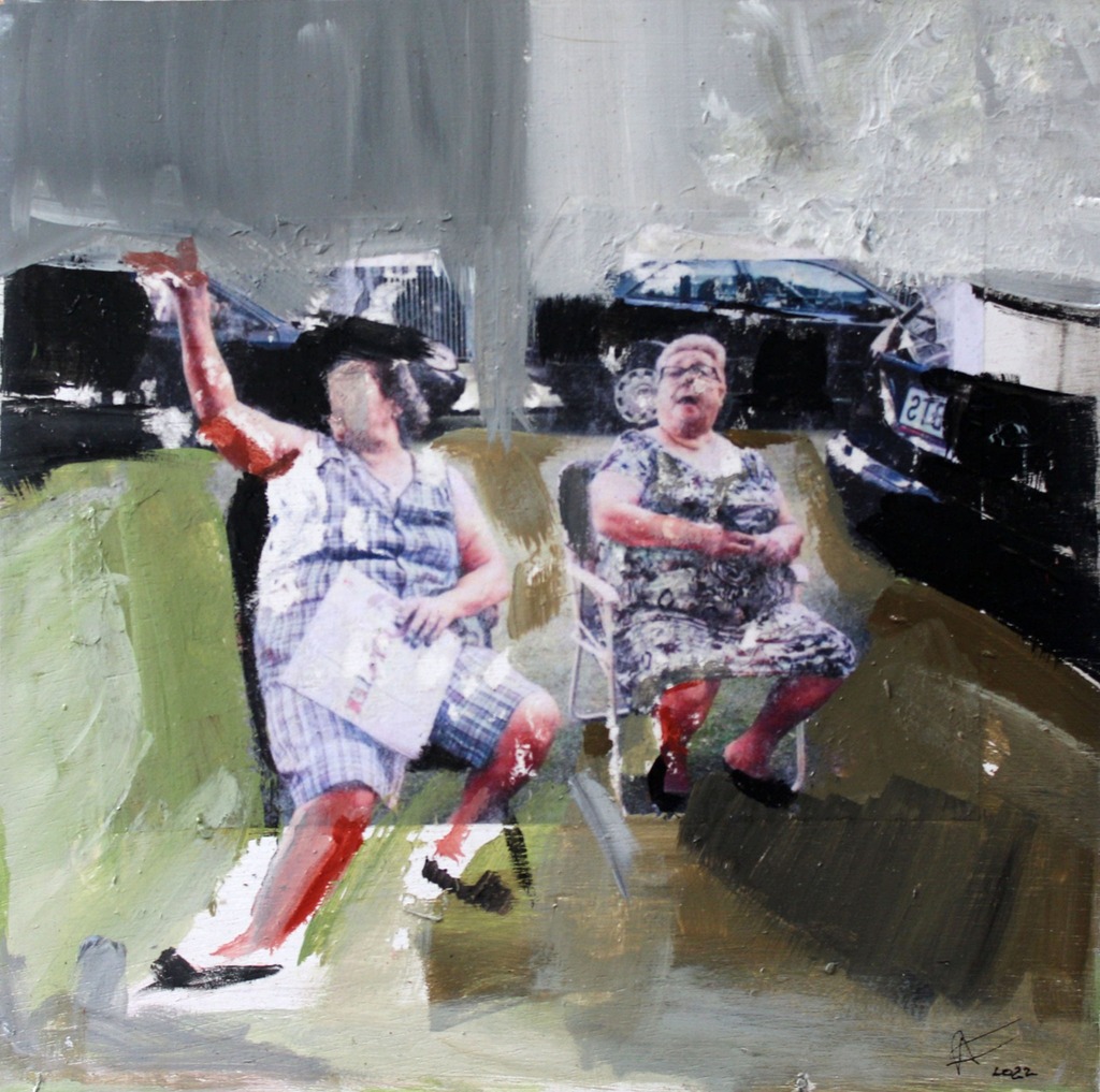 Antonio Ovejero A la fresca Técnica: Mixta. Transferencia fotográfica intervenida con pintura acrílica Medidas: 26×26 cm [Obra única] [Marco Infinity Madera de 3 cm grosor] 120 €