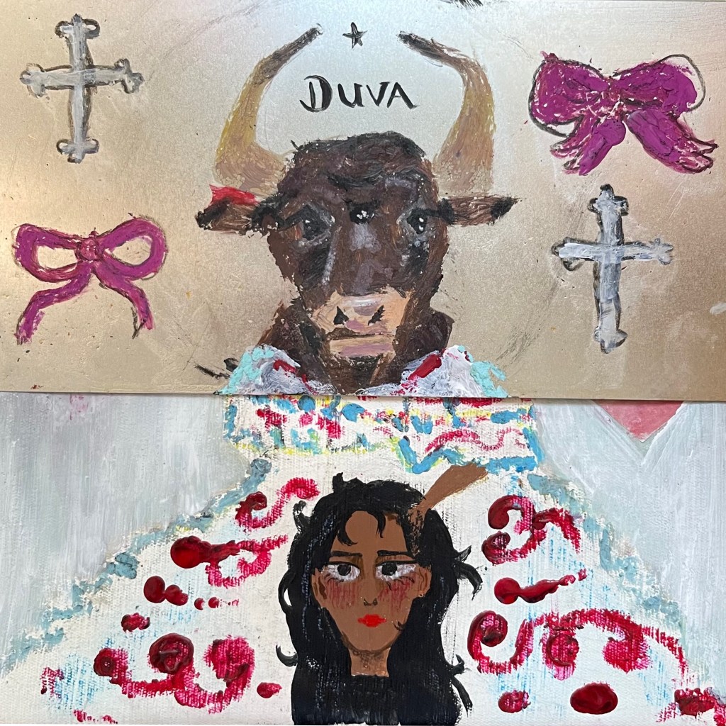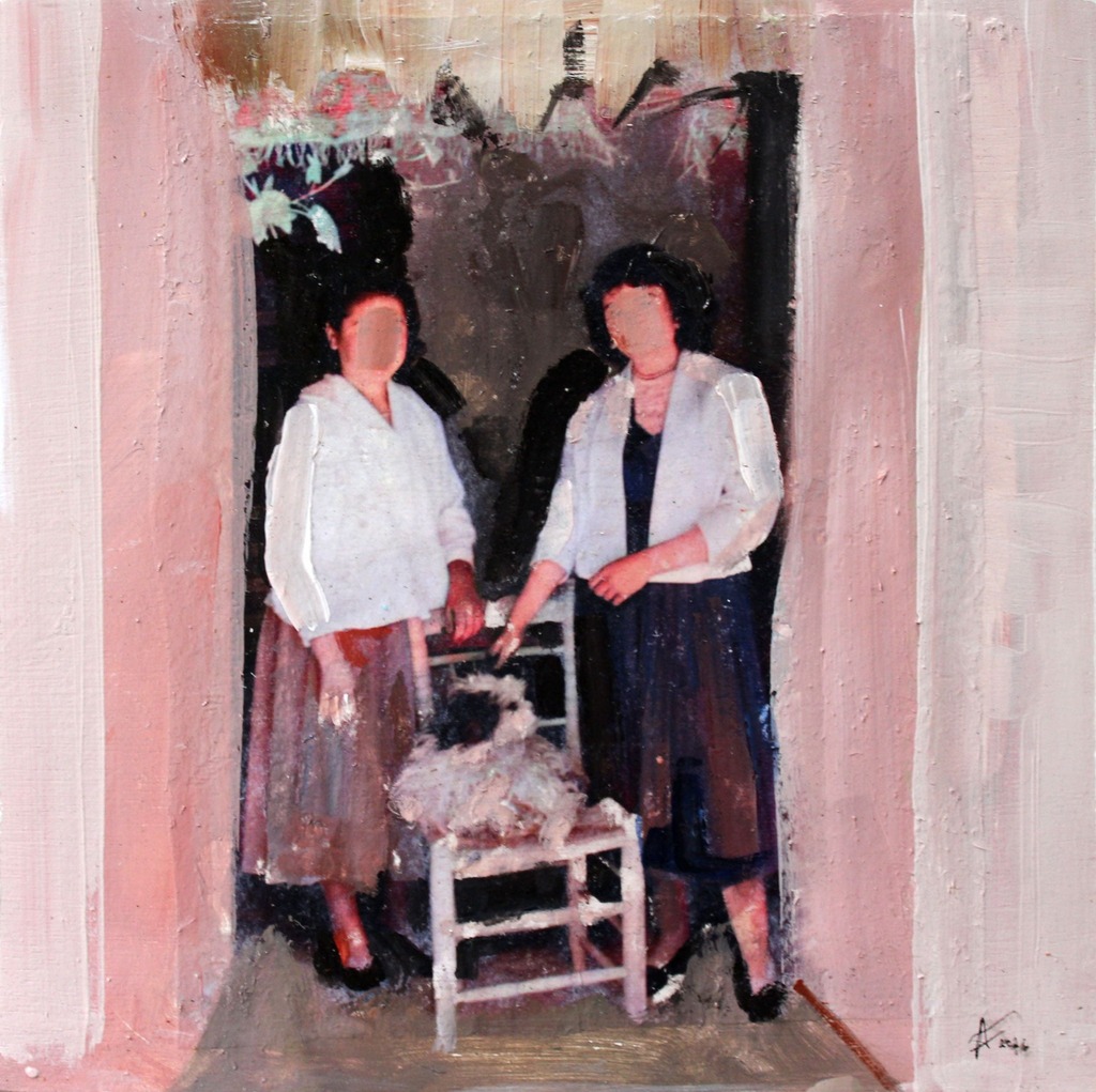 Antonio Ovejero Fernanda y Paca Técnica: Mixta. Transferencia fotográfica intervenida con pintura acrílica Medidas: 26×26 cm [Obra única] [Marco Infinity Madera de 3 cm grosor] 120 €