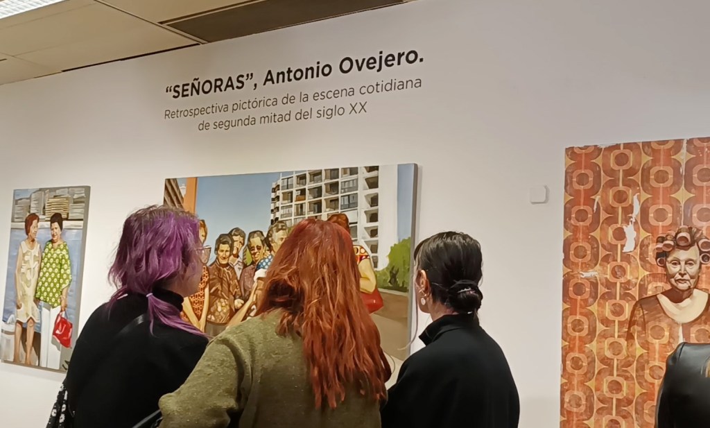 Antonio Ovejero genera todo un imaginario en torno a esas mujeres que representan el puro costumbrismo, la Paca, la Conchita, la Mercedes… Esas mujeres que nacieron en los pueblos de una España agrícola y pobre y que con el éxodo rural a principios de la segunda mitad del siglo XX se trasladaron a los barrios de ciudades más grandes en busca de una vida mejor. Mujeres con una niñez marcada por la estricta austeridad, de escasa comida y vestidos con zurcidos, que en su madurez pudieron disfrutar de una vida sin tantas restricciones en las que poco a poco fue emergiendo el color. Estos cuadros hablan de ellas.