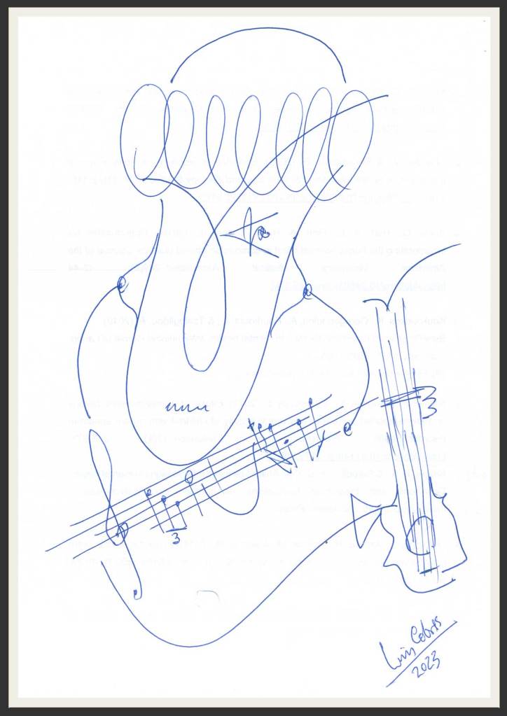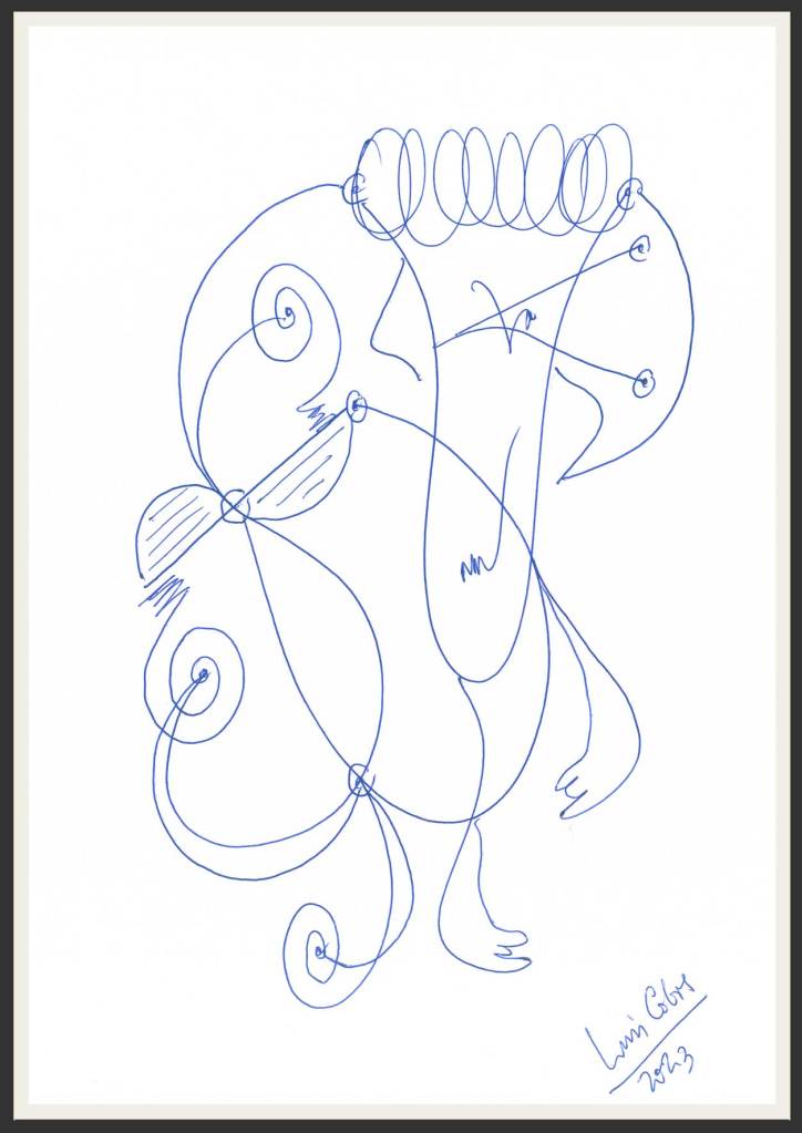 Luis Cobos Dibujo de un minuto – 3 Técnica: bolígrafo sobre un papel Medidas: 21×29 cm [Obra única original] 350 € [Obra gráfica 100 ejemplares] 80 € Certificado de autenticidad