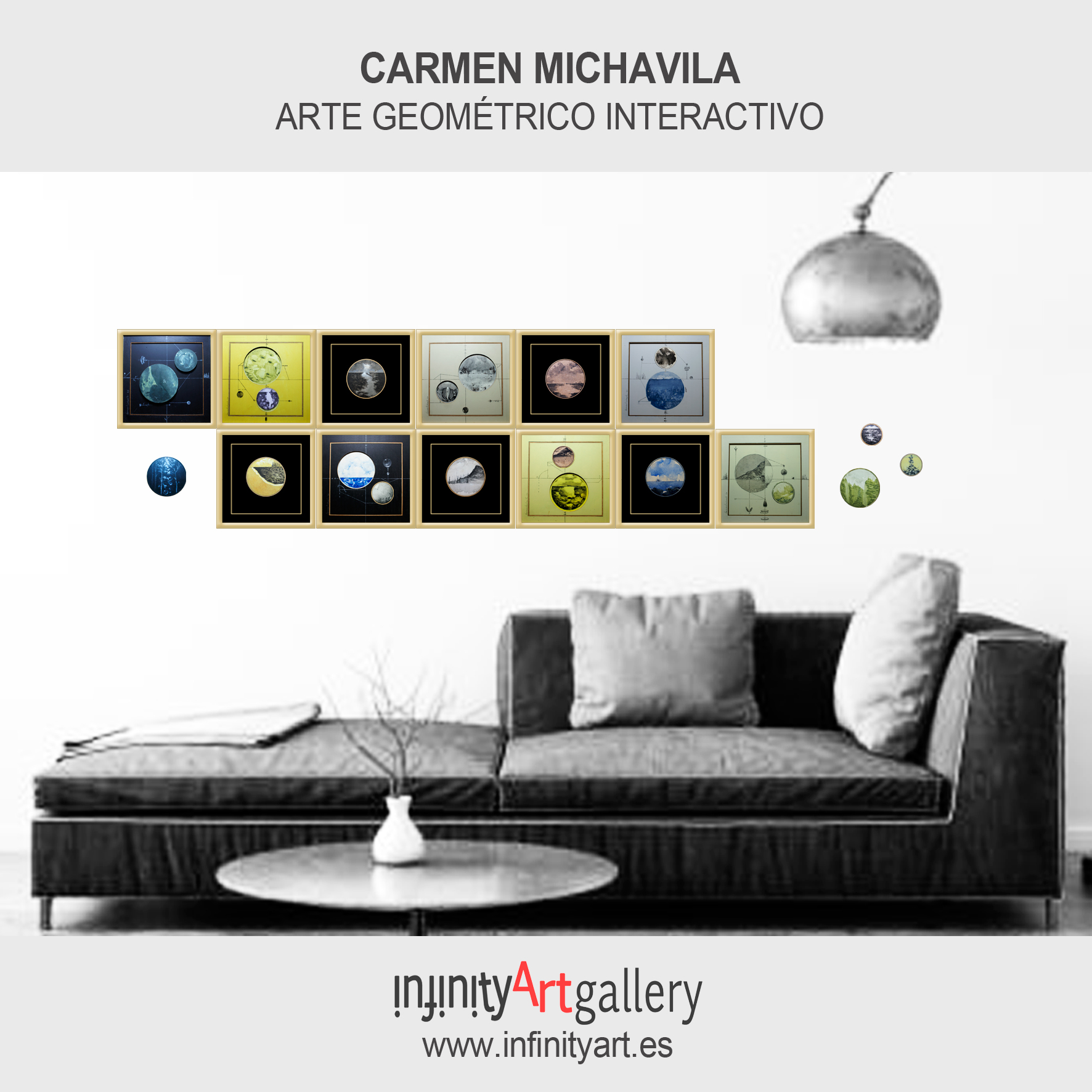 Obra modular única e interactiva realizada sobre 6 módulos independientes magnetizados de 26×26 cm cada uno, y enmarcadas en marcos Infinity de madera tallada de 2 cm de grosor. Incluye accesorios de fijación magnética. Las posibilidades de exposición, disposición e instalación que ofrece esta obra son infinitas.